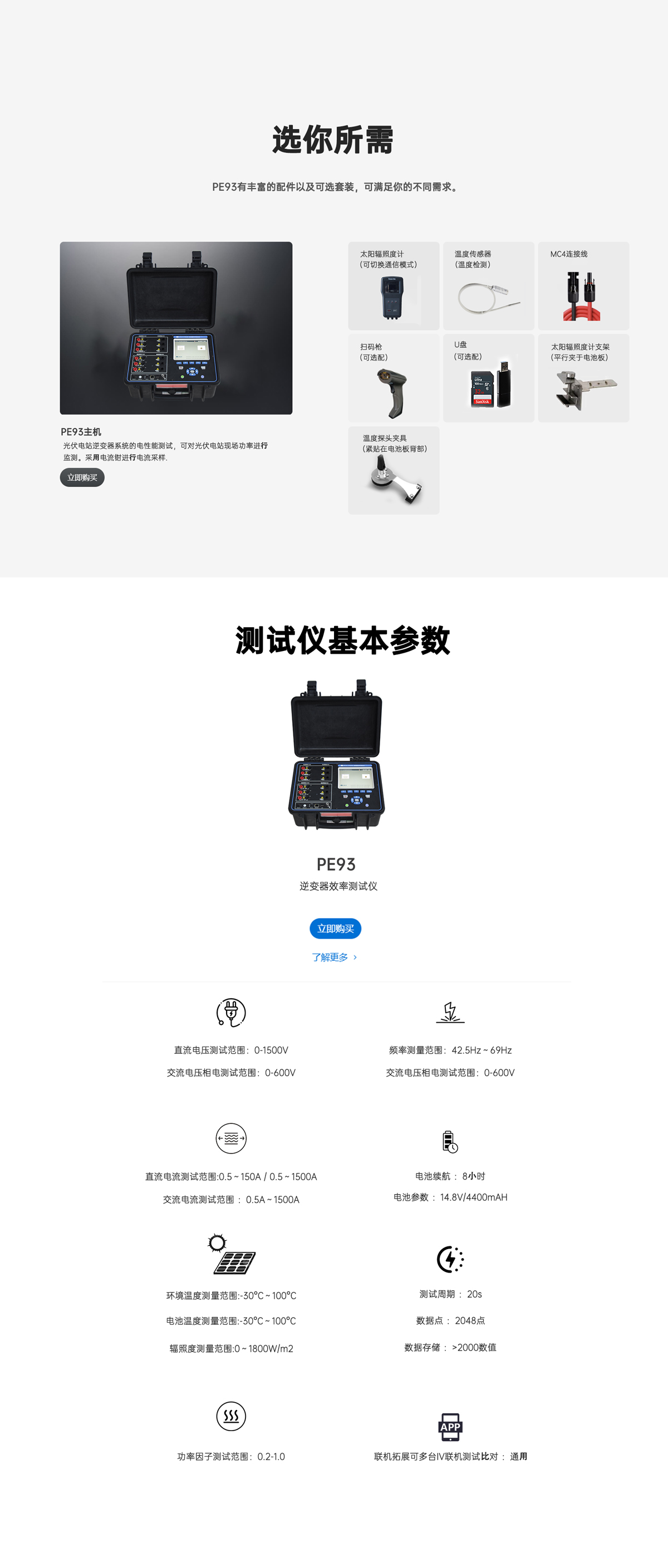 LX-PE93逆變器效率測試儀采用電流鉗進行電流采樣,能夠在電站正常工作狀態(tài)下對電站中不同節(jié)點的功率進行實時記錄分析。整機配備輻照系統(tǒng),可在電站各節(jié)點測量出準(zhǔn)確的實時發(fā)電效率并在系統(tǒng)自動生成PR值。