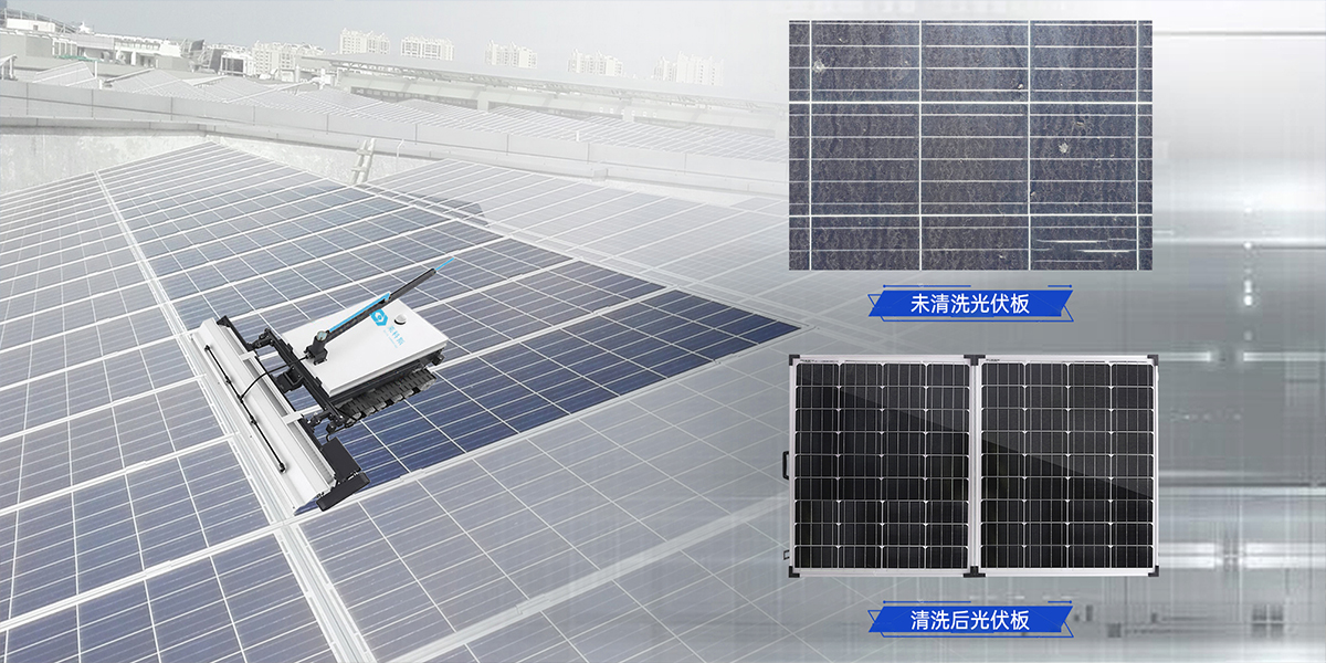 機(jī)器人采用旋轉(zhuǎn)式清潔滾刷,并配備雨簾噴嘴,根據(jù)現(xiàn)場(chǎng)檢測(cè)需求,進(jìn)行干洗與濕洗的切換,快速清洗模式下,清洗機(jī)器人小車一天可清洗2MW光伏電站電池板